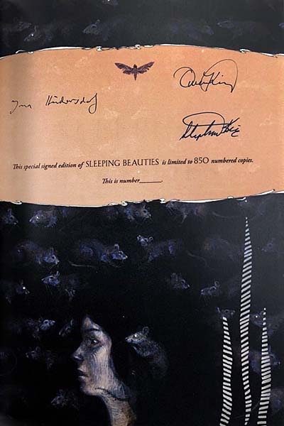 - Limited Edition of 850 copies printed in two colors with two-color hot foil stamping, a satin ribbon page marker and embossed endpapers, signed by Stephen King, Owen King, and Jana Heidersdorf, and housed in a custom-made traycase exclusive to this edition. Issue price $475. $650-$800